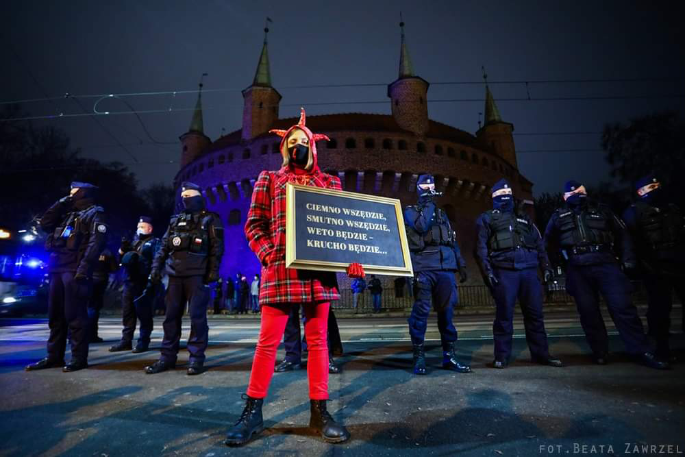 In October 2020, Julia Przyłębska’s Constitutional Tribunal passed a ruling against women, effectively banning their right to legal abortion. This was an attack on women’s fundamental right to self-determination. Despite the raging pandemic, thousands of people took to the streets of Polish cities. This situation prompted me to initiate an action expressing my opposition to the dangerous actions of politicians. I decided to create a figure that would symbolize female strength and sisterly support. A figure that would stand up for equal treatment for all, while also connecting with local history, making the protest more rooted in Krakow’s context. This is how Stańczyk(A) was born.